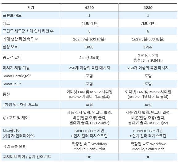 Vidoejet 1240/1280은 사용량이 적은 분야를 위하여 단순하고 안정적으로 설계되어, 작업자 누구나 간편하게 사용할 수 있는 보급형 잉크젯마킹기이니다. '사용 방법'비디오가 내장되어 초급 작업자도 쉽고 빠르게 작동법을 숙달할 수 있으며, 작업자 매뉴얼을 참고하는 수고를 감소시켜주고, 8인치 태블릿형 SIMPLICiTY 인터페이스를 갖추고 있으며, 작업자의 프린터 조작을 크게 줄여 잠재적인 사용자 오류를 방지할 수 있도록 지원합니다. 빠르고 쉽게 교체할 수 있는 Videojet SmartCell 서비스 모듈을 통해 생산라인의 생산성을 최대화하고 더 이상 조업중단을 겪지 않아도 됩니다.